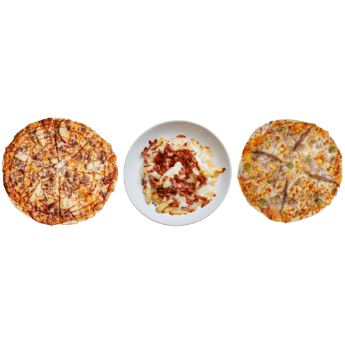 Patatas bacon + 2 pizzas a elegir por solo 20€.¡PREPARADO!